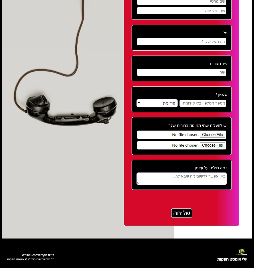 - על הטופס לכלול אפשרות להעלאת תמונות של המועמד.