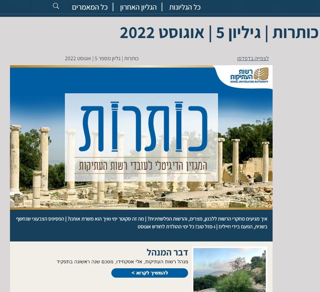 מערכת ניוזלטר ואתר ארכיון גיליונות ומאמרים של עובדי רשות העתיקות
