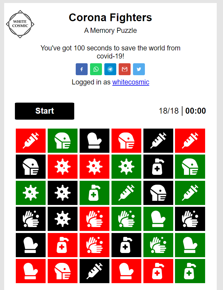 Among the games you can find a simple memory puzzle game in the spirit of the corona,