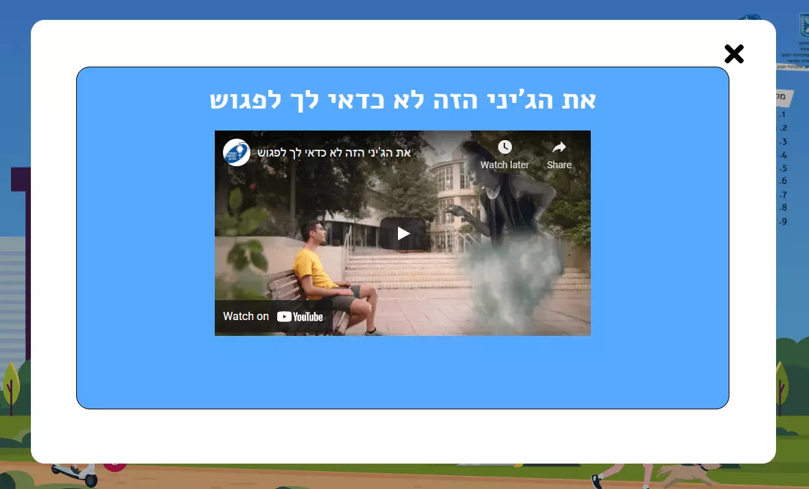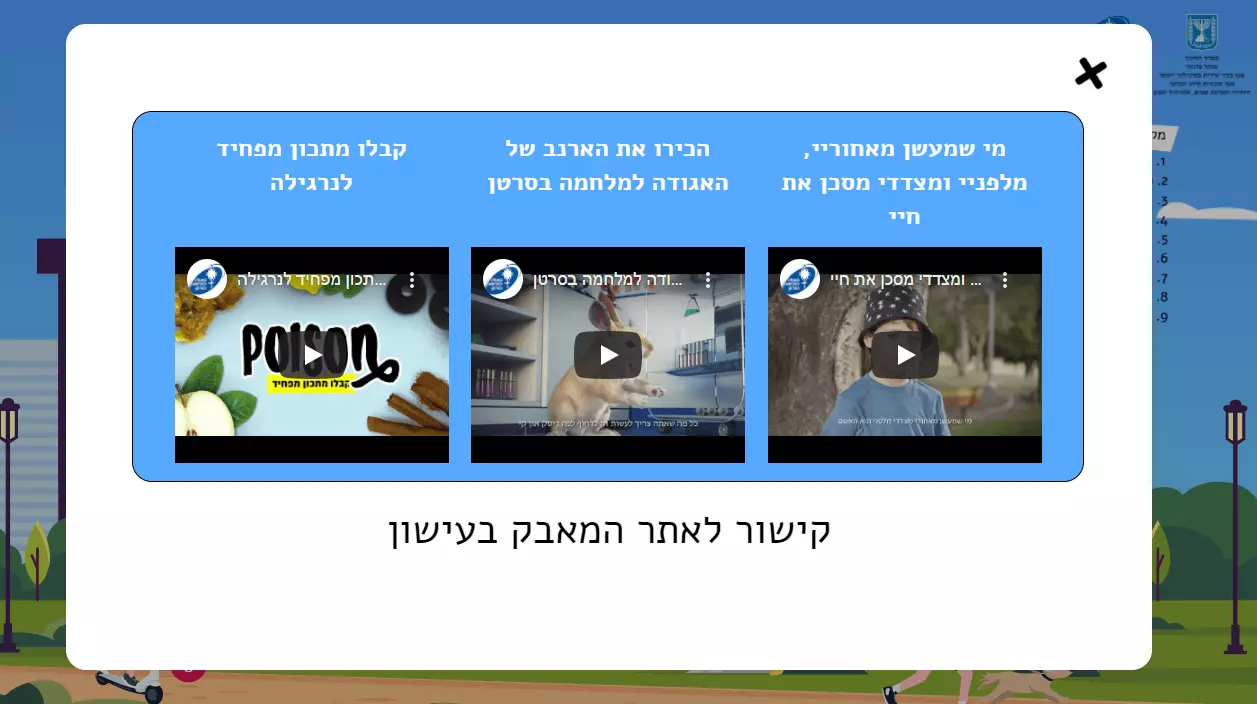 a popup showing one of the videos on smoking cessation, questionnaires, quizzes or conference information.